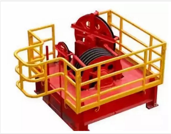 為了起升和下放鉆具、下套管以及控制鉆壓、送進鉆具,鉆具配備有起升系統(tǒng)。起升系統(tǒng)包括絞車、輔助剎車、天車、游車、大鉤、鋼絲繩以及吊環(huán)、吊卡、吊鉗、卡瓦等各種工具。起升時,絞車滾筒纏繞鋼絲繩,天車和游車構成副滑輪組,大鉤上升通過吊環(huán)、吊卡等工具實現(xiàn)鉆具的提升。下放時,鉆具或套管柱靠自重下降,借助絞車的剎車機構和輔助剎車控制大鉤的下放速度。在正常鉆進時,通過剎車機構控制鉆具的送進速度,將鉆具重量的一部分作為鉆壓施加到鉆頭上實現(xiàn)破碎巖層。