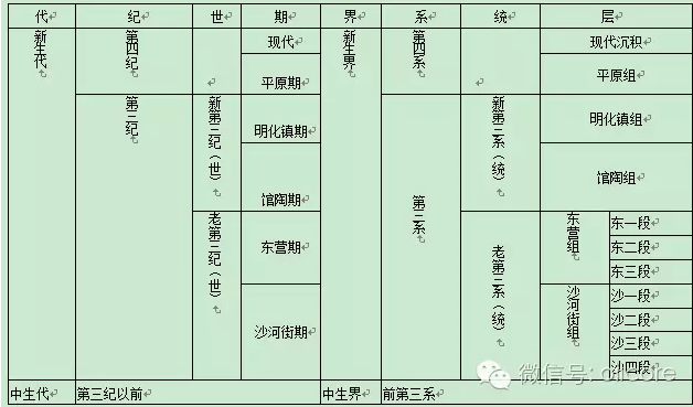 地質(zhì)工作者常常根據(jù)不同地區(qū)地層沉積的特點(diǎn)進(jìn)行區(qū)域性的分層,自統(tǒng)以下又細(xì)分為“組”、“段”。見下表: