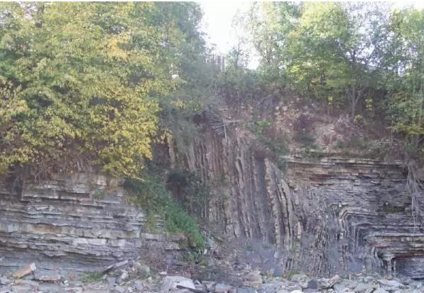 ②非連續(xù)變形構(gòu)造。巖層被切割失去原有連續(xù)性的構(gòu)造,屬破裂變形的,如節(jié)理、斷層。